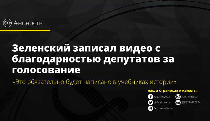 Данное видео было опубликовано на официальных каналах связи президента в соцсетях и на YouTube. В своем обращении Зеленский сказал, что благодарит депутатов за то, что они сделали настолько важную вещь, что никто не может этого представить.