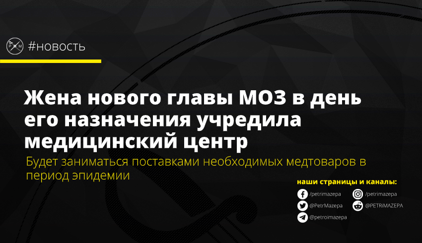 Жена нового главы МОЗ в день его назначения учредила медицинский центр