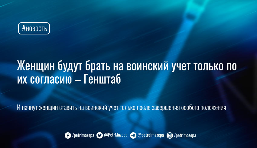 «Таким образом, опыт разворачивания воинских частей Вооруженных сил Украины и других воинских формирований до полных штатов военного времени доказывает, что в государстве на данный момент нет острой необходимости существенно увеличивать количество женщин на воинском учете. Учитывая это, Главным управлением персонала Генерального штаба Вооруженных сил Украины обработаны предложения касательно взятия женщин на воинский учет военнообязанных только по их согласию. Также планируется начать проведение мероприятий по включению женщин на воинский учет не раньше, чем через месяц после завершения особого периода», — рассказал Генштаб ВСУ.