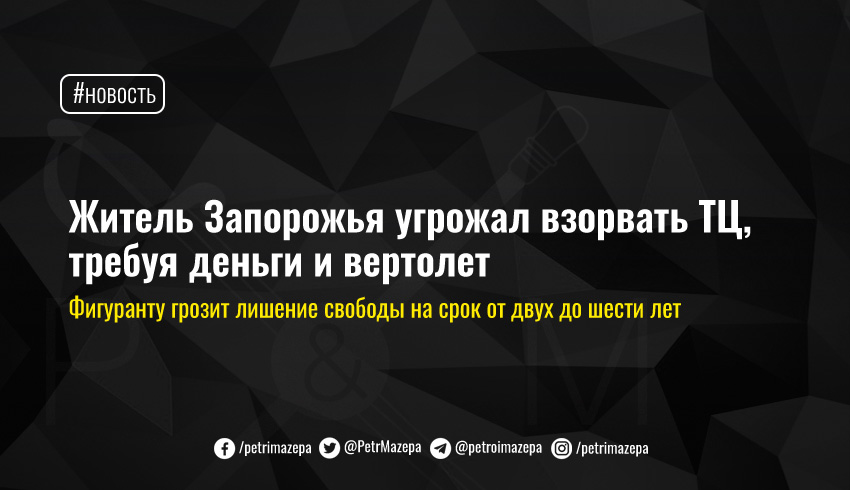 Житель Запорожья угрожал взорвать ТЦ, требуя деньги и вертолет