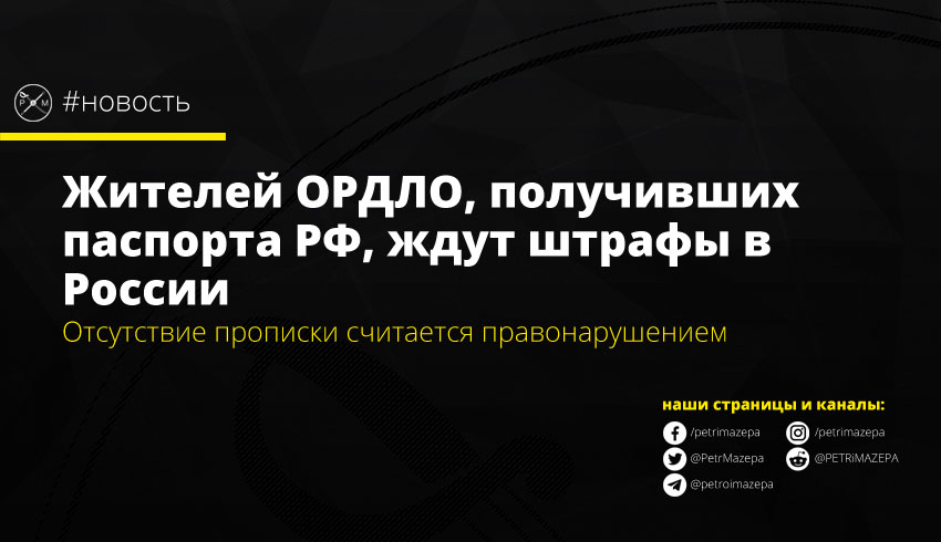 Об этом сообщает издание «Остров» со ссылкой на юриста адвокатской палаты из Москвы Максима Шепелева, отвечавшего на вопросы жителей оккупированных территорий в Telegram-канале боевиков. Он отметил, что в России паспорт имеет силу и без прописки, из страны его обладателя не прогонят, но «для государства отсутствие прописки является правонарушением и наказывается штрафами как для вновь получивших гражданство, так и для обычных граждан по рождению». Он также отметил, что без прописки граждане не будут иметь равноценные с другими гражданами права – «Без нее элементарно не получить социальные льготы, пенсии, медицинское обслуживание, в том числе не устроиться на работу».