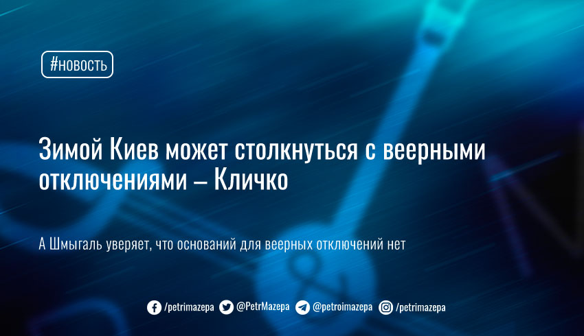 Городской голова Киева Виталий Кличко заявил, что на 10 из 12 теплогенерирующих предприятий страны не хватает энергоносителей, и это может привести к веерным отключениям электроэнергии при наступлении холодов. При этом премьер-министр Денис Шмыгаль уверяет – это дезинформация, оснований для веерных отключений нет.