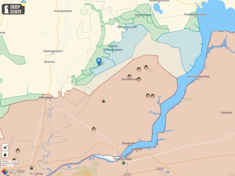 Согласно данным DeepStateMap, начиная со 2 октября в Херсонской области украинские военные освободили и взяли под контроль около 700 кв. км. Еще около 500 кв. км перешли в серую зону.