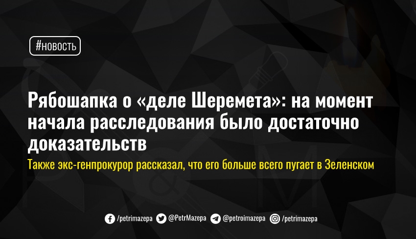 Бывший генеральный прокурор Руслан Рябошапка в интервью «Голосу Америки» рассказал, почему дал ход «делу Шеремета». Также он поделился своими опасениями насчет нынешней деятельности Владимира Зеленского и анонсировал свое возвращение в украинскую политику.