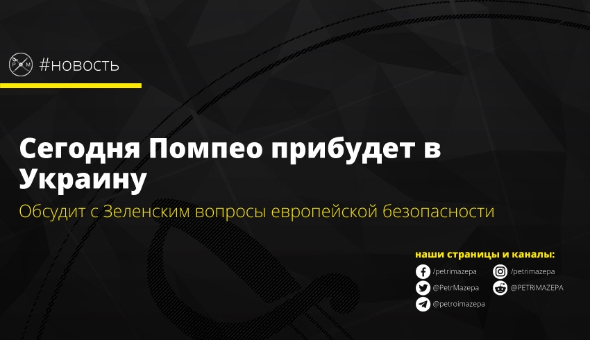 С сегодняшнего дня государственный секретарь США Майк Помпео начинает двухдневный визит в Украину. У него запланирован ряд встреч. Ожидается, что во время разговора с президентом Владимиром Зеленским он обсудит вопросы европейской безопасности.