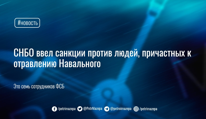 Совет национальной безопасности и обороны сегодня, 17 сентября, ввел санкции против семи сотрудников Федеральной службы безопасности России, причастных к отравлению политика Алексея Навального.