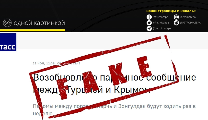 В пятницу ряд СМИ страны-агрессора и аннексированного полуострова Крым распространил информацию о том, что из Керчи в Зонгулдак (Турция) начинают ходить грузовые паромы. В Турции эту информацию официально опровергли.