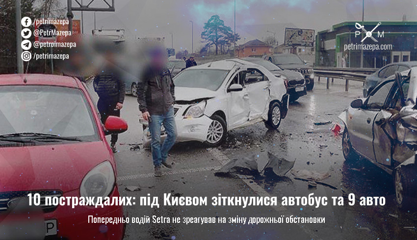 10 постраждалих: під Києвом зіткнулися автобус та 9 авто