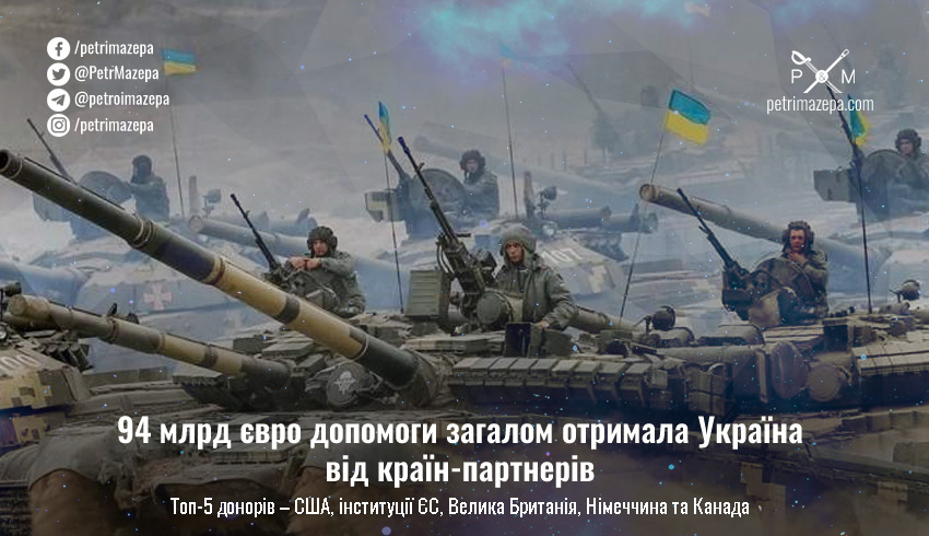 94 млрд євро допомоги загалом отримала Україна від країн-партнерів