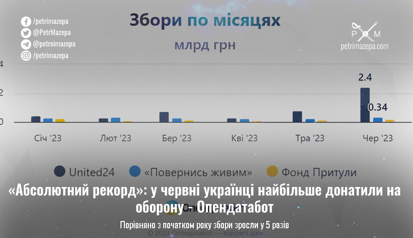 «Абсолютний рекорд»: у червні українці найбільше донатили на оборону - Опендатабот