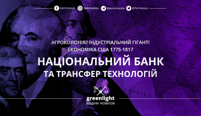 Агроколонія? Індустріальний гігант! Економіка США 1775-1817. Національний банк та трансфер технологій