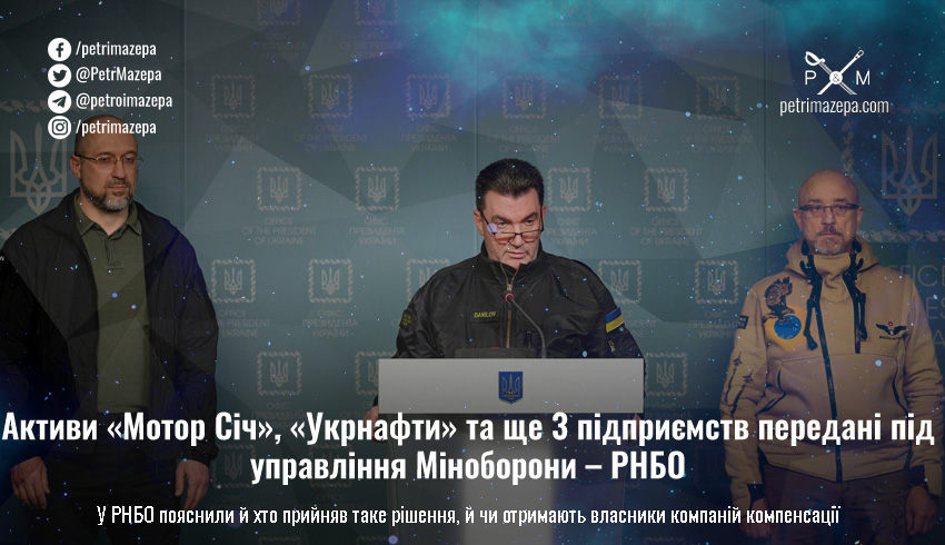 Активи «Мотор Січ», «Укрнафти» та ще 3 підприємств передані під управління Міноборони – РНБО
