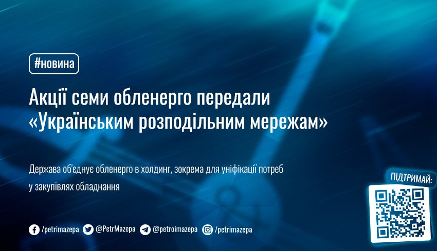 Міністерство енергетики передало державний пакет акцій п'яти операторів системи розподілу електроенергії компанії «Українські розподільні мережі» (УРМ).