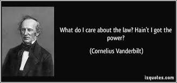 У своїй автобіографії Теодор Рузвельт писав, що це неправильно — нищити всі великі корпорації, незалежно від їхньої поведінки, треба навчити їх жити за законом. Тобто твердження Рузвельта є протилежністю твердженню Вандербільта. Хочеш бути великим бізнесом — живи за законом, а не підміняй закон своєю владою.