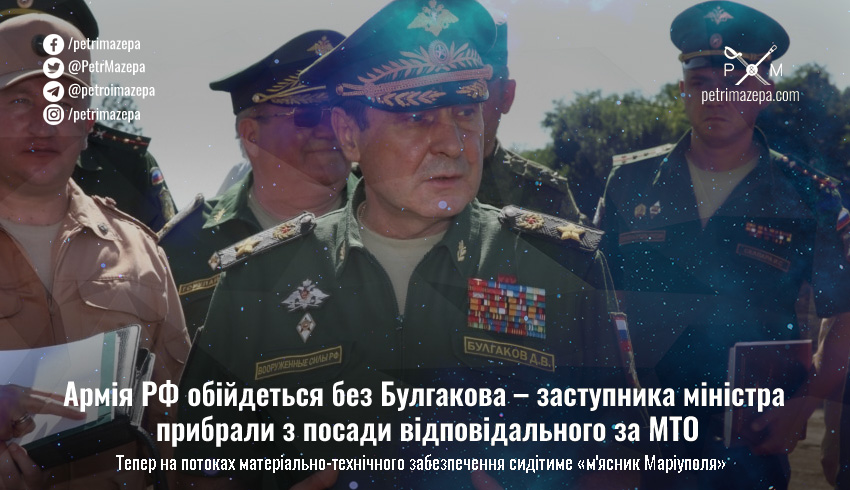 Згідно з повідомленням Міноборони країни-агресора, Булгаков перейде на іншу роботу. Але яку посаду він тепер обійматиме, не уточнили, пише «Радіо Свобода».