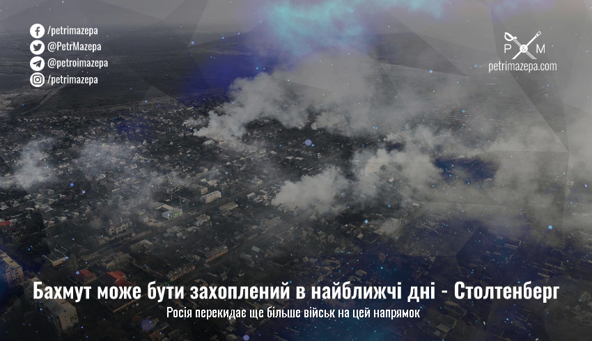 Генеральний секретар НАТО Єнс Столтенберг вважає, що Бахмут може бути захоплений вже у найближчі кілька днів.