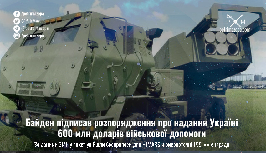 Президент США Джо Байден підписав розпорядження про надання Україні 600 мільйонів доларів військової допомоги. За даними ЗМІ, до нового пакету допомоги увійдуть додаткова зброя, боєприпаси та обладнання.