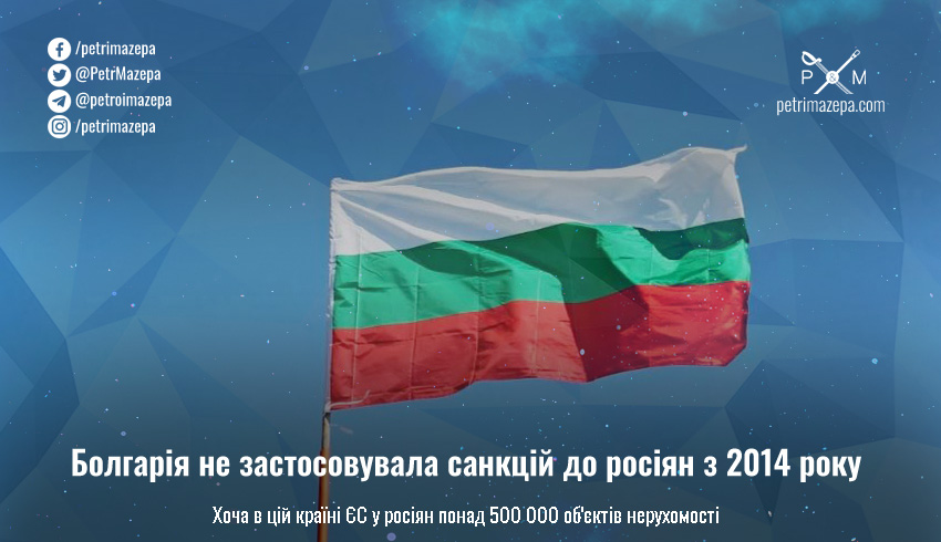 Болгарія не запроваджувала санкцій проти російських громадян або компаній, включених до санкційного списку ЄС, з моменту їх першого запровадження після анексії Криму в 2014 році.