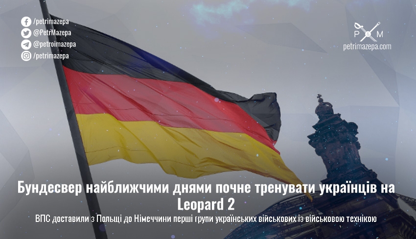 Бундесвер почне тренувати українських військових на танках Leopard 2 наступного тижня. За останні кілька днів німецькі ВПС доставили з Польщі до Німеччини перші групи українських військових із військовою технікою.
