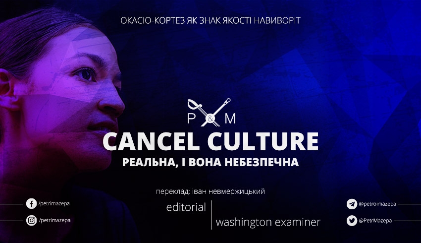 «Культури відміни не існує», — говорять ліві в одне вухо. А в інше — схвалюють дії інтернет-натовпу, що ганьбить і навіть руйнує життя тих, хто нібито вчинив думкозлочин (“a thought crime”)[1]. Це газлайтинг[2], і це відвертий абсурд. Cancel Culture реальна, і вона становить велику небезпеку для суспільства, що колись пишалося своєю свободою слова.
