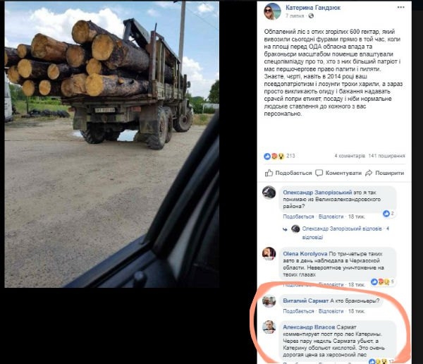 Після цієї пожежі в Херсоні відбувся мітинг під облрадою. А юристи кажуть, що у кримінальних провадженнях про підпал лісу проходять кілька людей, які напали на Катерину і облили її кислотою.