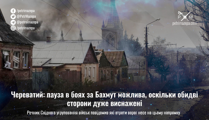 Череватий заявив, що поки не можна говорити про оперативну паузу в Бахмуті. Але, з огляду на втрати росіян, виснаження оборони ЗСУ та погодні умови, її можна допустити. Хоча є й інший варіант розвитку подій.