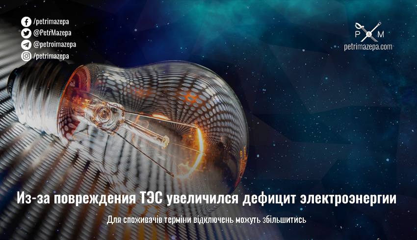 Через пошкодження ТЕС збільшився дефіцит електроенергії