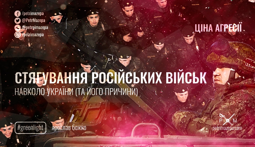 Ми не можемо бути певні, що мета росіян була наперед визначена повністю ще до самого стягування військ. Радше навпаки, маємо ситуацію, яка розвивається на наших очах, і дії керівництва РФ можуть напряму залежати від реакції Заходу на перший етап накопичення військових сил біля українського кордону. Певним чином це одночасно «промацування» системи нашої оборони, виявлення механізмів реагування українських силовиків та органів влади і реакції Заходу на підготовчі заходи з боку РФ.