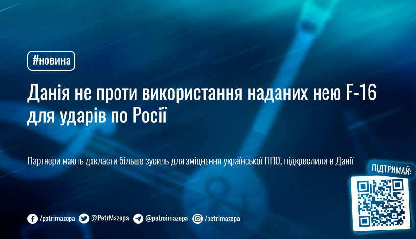 Данія не проти, щоб українці використовували надані нею винищувачі F-16 для ударів по території Росії.