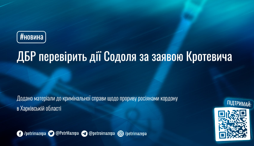 ДБР розглянуло заяву Кротевича щодо можливого перевищення повноважень і некомпетентного командування з боку Содоля. Додано матеріали до кримінальної справи щодо прориву російськими військами кордону в Харківській області, включаючи оцінку дій військового командування ОСУВ «Хортиця» під час оборонних операцій.