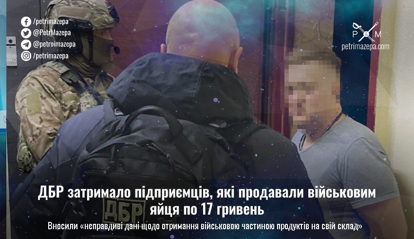 Працівники Державного бюро розслідувань (ДБР) в ході спільної спецоперації зі Службою безпеки України (СБУ) викрили та затримали злочинну групу, яка привласнювала кошти, виділені на харчування військовослужбовців Збройних Сил України (ЗСУ). У ДБР наголошують, що це ті самі підприємці, які намагалися продавати «військовим яйця по 17 гривень».