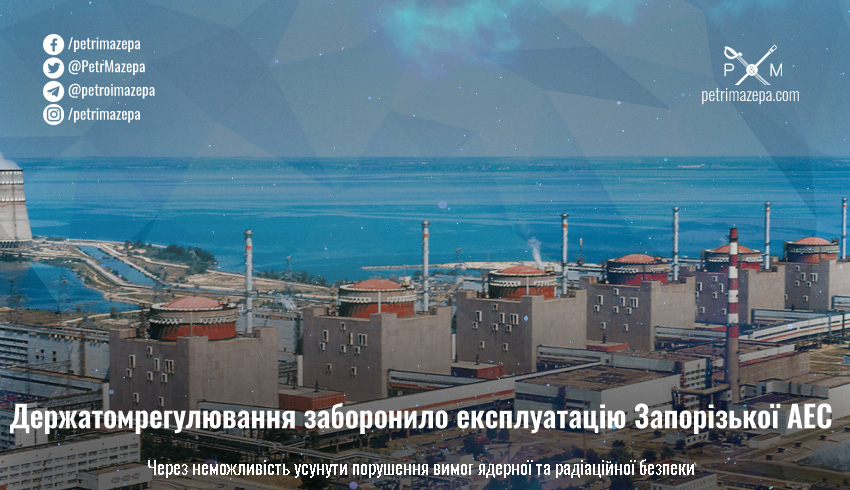 Державна інспекція ядерного регулювання України заборонила експлуатацію енергоблоків №3, №4, №5 та №6 Запорізької АЕС.