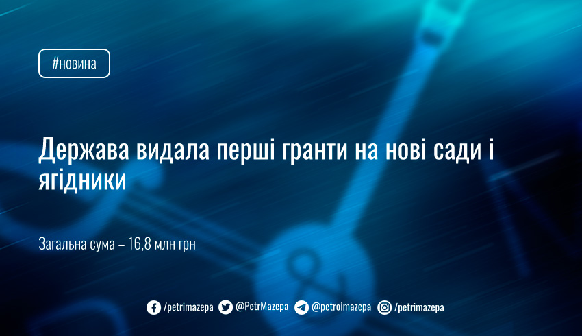 Держава погодила перші гранти в межах програми єРобота на закладку садів та ягідників. Загальна сума — 16,8 млн грн.