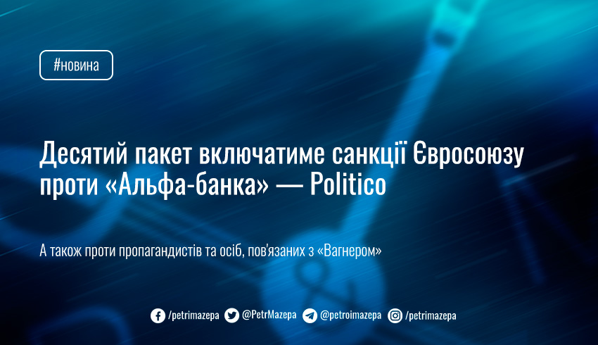 Десятий пакет включатиме санкції Євросоюзу проти «Альфа-банка» — Politico