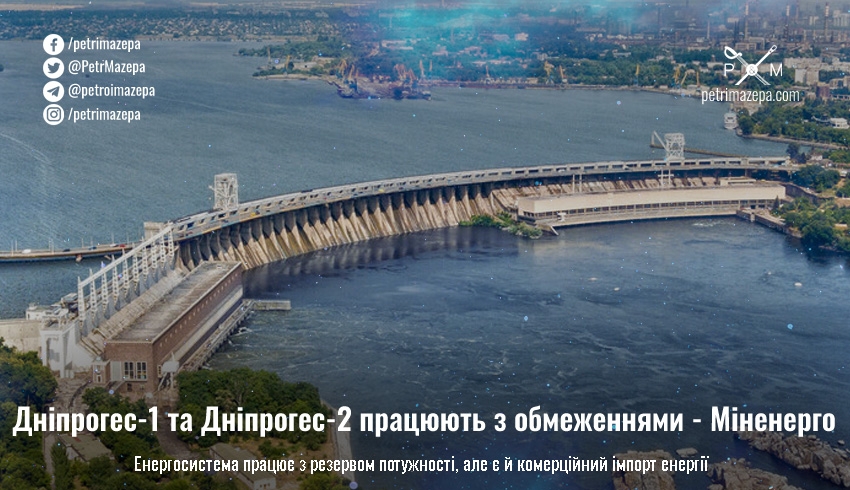 Дніпрогес-1 та Дніпрогес-2 працюють з обмеженнями - Міненерго