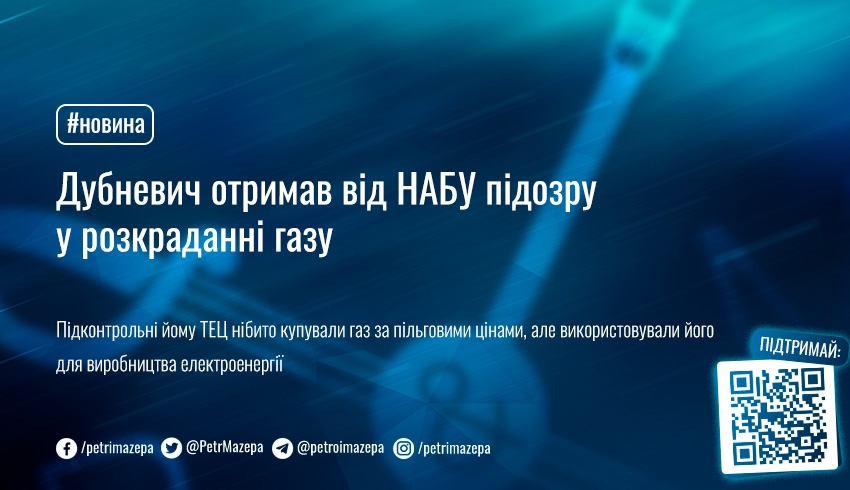 Депутат Верховної Ради Ярослав Дубневич отримав заочно підозру від Національного антикорупційного бюро у розкраданні газу на суму 2,1 мільярда грн.