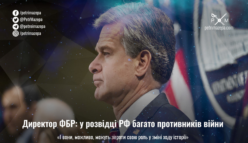 Директор Федерального бюро розслідувань США Крістофер Рей заявив, що у російській розвідці є багато противників війни в Україні.