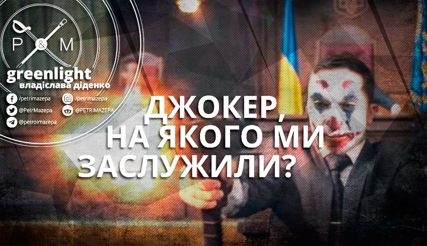 Чи є Володимир Зеленський нашим Джокером? Останній — це уособлення трагедії однієї людини на тлі суспільства. А шостий президент може принести постпротестну руйнацію, кров і біль уже для цілої нації. В епоху постправди на задній план відповзає одне просте поняття: відповідальність. Відповідальність за себе, свою країну та дітей. І якщо Джокер є продуктом жорстокості та байдужості соціуму, то Зеленський є продуктом масового інфантилізму.