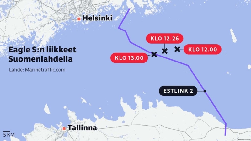 Нагадаємо, цей кабель з'єднує Фінляндію з Естонією. Вчора, 25 грудня, стало відомо, що він пошкоджений.