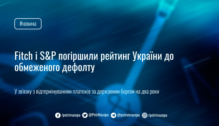 Fitch і S&P погіршили рейтинг України до обмеженого дефолту