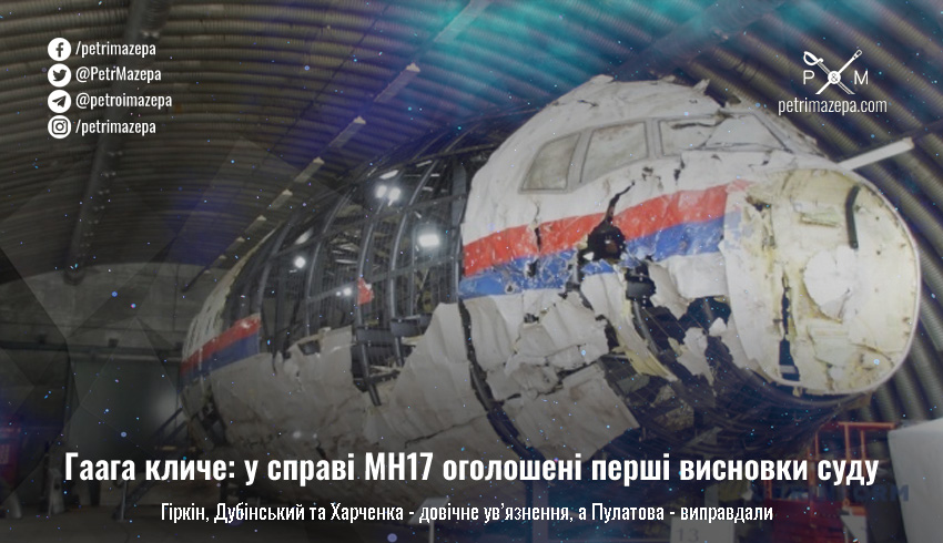 Ігоря Гіркіна, Сергія Дубінського та Леоніда Харченка Гаазький суд визнав винними у справі про катастрофу малайзійського літака рейсу MH17 у 2014 році на Донбасі. А ось по четвертому підозрюваному, Олегу Пулатову, змінили рішення на те, що він мав змогу бути свідком, але не співучасником. А тому — є невинним.