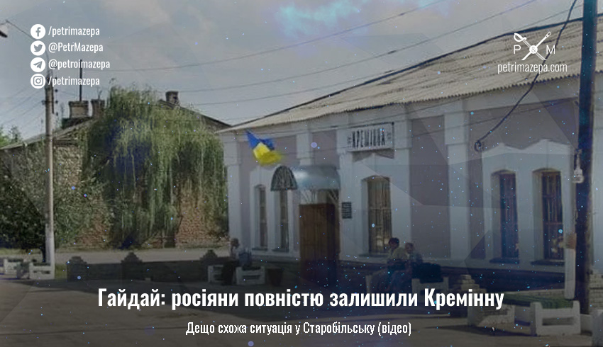 Голова Луганської ОВА Сергій Гайдай повідомив у етері російського каналу «Настоящее время», що російські окупанти повністю залишили Кремінну на Луганщині. Й майже порожній Старобільськ.