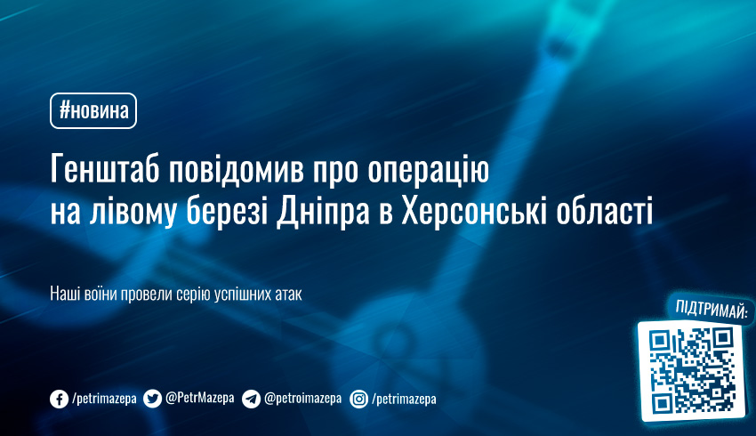 У Генеральному штабі Збройних сил повідомили про операцію на лівому березі Дніпра в Херсонській області.