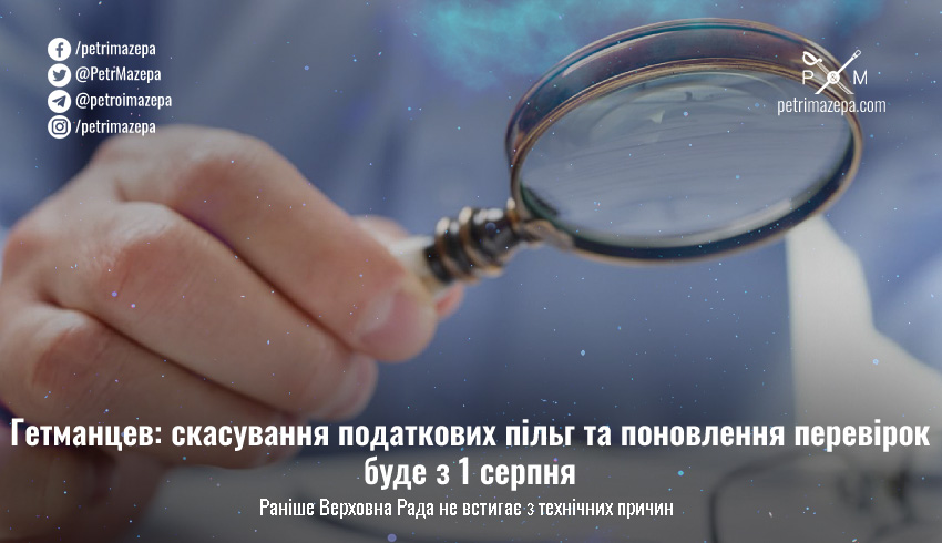 Гетманцев: скасування податкових пільг та поновлення перевірок буде з 1 серпня
