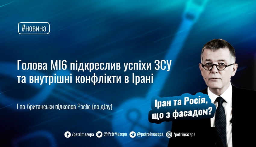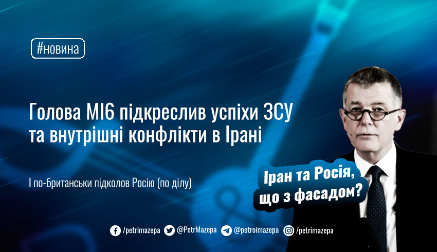 Щодо Ірану ситуація наступна. Серед лідерів Ірану, за даними Мура, виникли суперечки через поставки ударних дронів на територію РФ. Голова розвідки вважає, що Іран планував заробити легких грошей та отримати від росіян військові технології. А кому, як не шефу MI6, говорити про це?