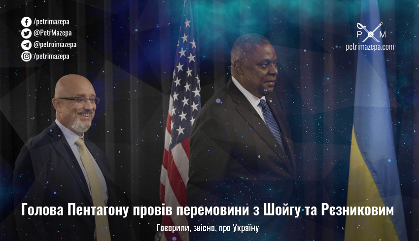 Голова Пентагону Ллойд Остін провів перемовини із міністром оборони країни-агресора Шойгу, після чого пройшли перемовини з Міністром оборони України Олексієм Рєзниковим.