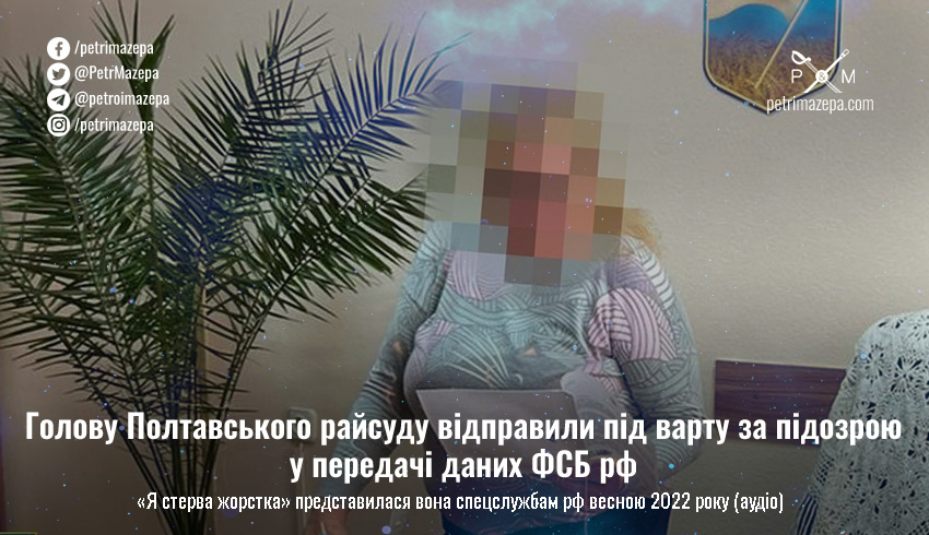 У Запоріжжі суд взяв під варту (без альтернативи у вигляді застави) голову Полтавського райсуду, яку підозрюють у передачі даних російським спецслужбам. Раніше суддя Лариса Богомолова сама зв’язалася з росіянами та передавала їм інформацію про військових, які намагалися покинути окуповані території, та дані суддів, які були проти окупації.