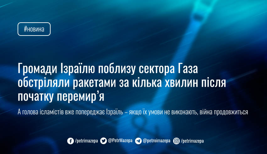 Громади Ізраїлю поблизу сектора Газа обстріляли ракетами за кілька хвилин після початку перемир’я