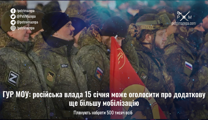 ГУР МОУ: російська влада 15 січня може оголосити про додаткову ще більшу мобілізацію