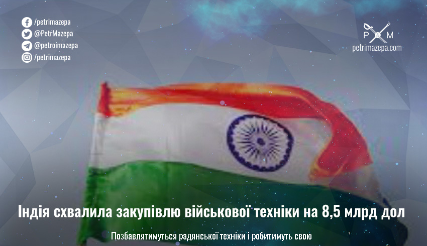 Індійська Рада з оборонних закупівель (DAC) підтвердила, що вона затвердила закупівлю різних видів зброї та техніки на загальну суму 8,5 млрд дол. Вона включає ракети, вертольоти, артилерійські гармати та системи радіоелектронної боротьби. Всі замовлення будуть розміщені в індійських компаніях, щоб збільшити вітчизняне оборонне виробництво.